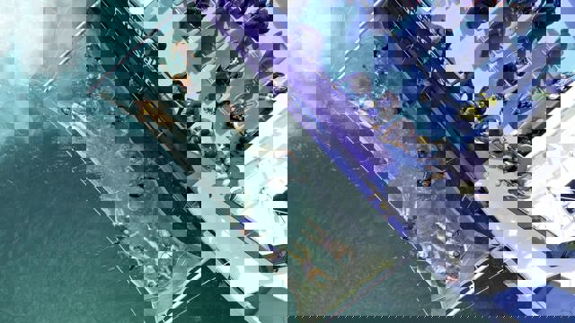 Following your island stop, we'll set off through the inner islands of the bay, past the unique Black Rocks, the historic Marsden Cross where the first Europeans settled in New Zealand and then you'll have an opportunity to try your hand at boom-netting when available!