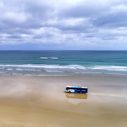Travel along Ninety Mile Beach in our purpose built coach